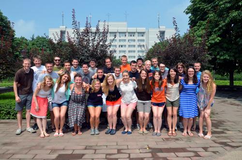 2013年首批来校学习的美国大学生在我校合影留念