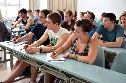 5月27日,国外大学生日常汉语会话学习的第一课开讲,2013年首批来自美国日常汉语会话学习的30名高校大学生将在我校国际学院进行为期5周的汉语培训。这也标志着我校2013年暑期国外大学生汉语短期培训项目正式开始。