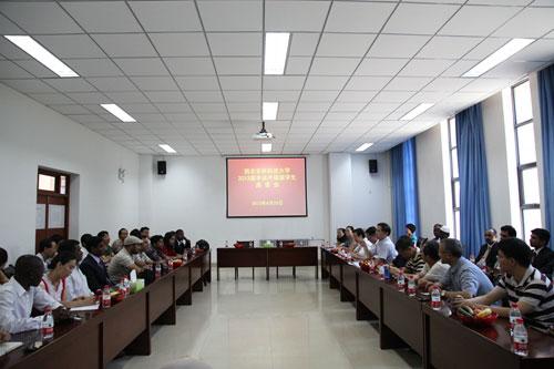 座谈会上国际学院通报了2013届毕业外国留学生总体情况。国际合作与交流处、研究生院、学生处、后勤管理处、保卫处、校医院等部门负责人,部分学院分管外国留学生工作的院领导、外国留学生导师代表和全体2013届毕业外国留学生及家属、国际学院全体人员参加了座谈会。