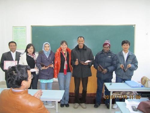 11月19日,国际学院在S1103教室举办2010年第一期中文诗词朗诵比赛。学院领导郑粉莉、李筱英、祁选轩出席, 2009级、2010级全体留学生参赛。