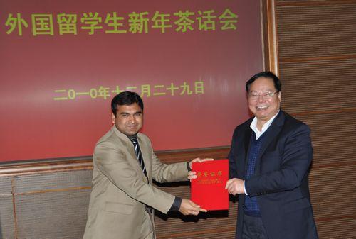 12月29日,学校在国际交流中心210会议室举行了2010年外国留学生新年茶话会。孙武学校长、侯曦副校长、王跃进副校长及有关部门负责人、学院导师和外国留学生等一百余人参加了茶话会。