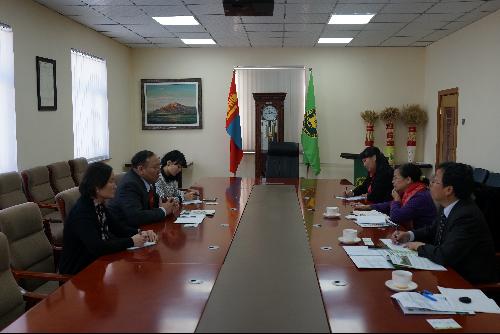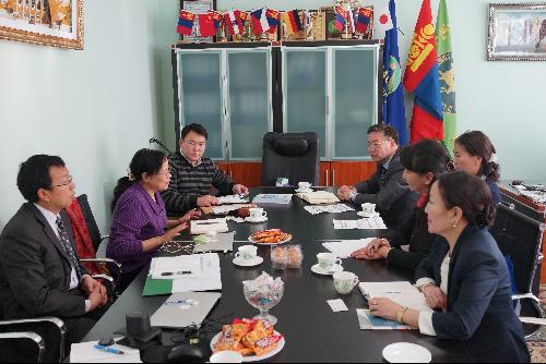 期间,代表团先后与蒙古生命科学大学国际事务主任SUKHTULGA博士和经济与商务学院院长BAASANSUKH博士等相关部门负责人进行了会谈,郑粉莉详细介绍了我校的办学条件、优势学科、专业特色和留学生招生相关信息等,双方就国际合作办学、研究生联合培养、科研合作、联合申办国际会议、暑期访学等事宜进行了座谈。