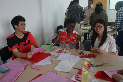 手把手共同学习,让中外学生感受深刻。孟加拉国留学生楚兴言说:“在中国饺子代表团圆、财富和幸福的意思,我以后回国可以让家人尝尝中国饺子的味道”。来自非洲的留学生赵天成说:“我很高兴学会了剪纸,我要把剪好的“福字”贴在门上”。用英语和留学生们顺畅交流,让园艺学院谭奕感觉非常开心,“今后我们会保持联系,互相学习,取长补短”。经管学院王彬康表示,作为当代大学生,我们有责任和使命去传承和弘扬中华优秀传统文化,让更多的人了解中国。“今后我还要不断提高对中华优秀传统文化的自主学习和探究能力”。