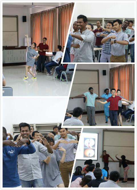 6月15日上午,汉语教师曾柱在学院206教室给2015级外国留学生上了一堂别开生面中国舞蹈课。曾老师先从汉字——“舞”入手,给大家介绍了“舞”字的含义,然后给大家介绍了中国古典舞和民族舞。在介绍古典舞的时候,曾老师通过讲解、播放视频的方式,让学生了解了“水袖舞、扇子舞、长绸舞”等几种古典舞的特点。在介绍民族舞的时候,则通过动作示范、学生上台体验、舞蹈欣赏等教学步骤,让学生对“傣族舞”“蒙古舞”“新疆舞”等民族舞的典型动作和特点有了清晰的认识。或许是因为长期扎在书堆里的原因,舞蹈课上,大家都异常兴奋,同学们来自不同的国家,看到老师在讲台上示范动作,有些同学觉得很别扭,有些同学却很high地跟着跳了起来。