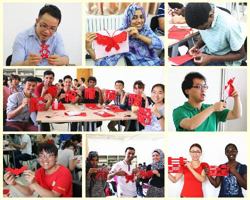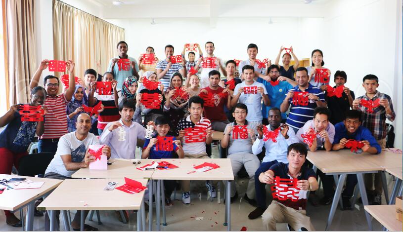 “老师这是一个汉字吗?为什么有两个喜欢的喜在一起呢?”,“老师,我可以用绿色的纸剪吗?在我的国家我们喜欢绿色。”6月17日上午,我院第三届中国文化周系列活动继续在国际学院206教室展开。本次活动的主题是中国剪纸,作为人类非物质文化遗产,剪纸艺术源远流长,它起源于民间,是一种深受中国人民喜爱的民俗艺术,并且以其独特的视觉形象和造型格式日渐成为中国走向世界的一个重要的文化符号。