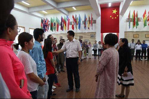 9月13日下午,副校长罗军来到国际学院亲切看望2016级外国留学生,并与新生合影留念。