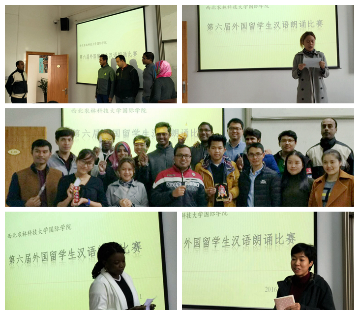 11月11日下午,我院在206教室成功举办了第六届来华留学生朗诵比赛。通过初期选拔,共有来自孟加拉国、泰国、斯里兰卡、中非、老挝、柬埔寨等国的14名选手进入了此次比赛。我院汉语教师曾柱、王敏、张杰、王珏青担任了本次比赛的评委。